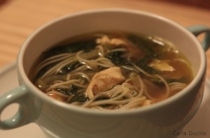 Essa sopa de frango, espinafre e noodle também é rapidíssima e deliciosa: